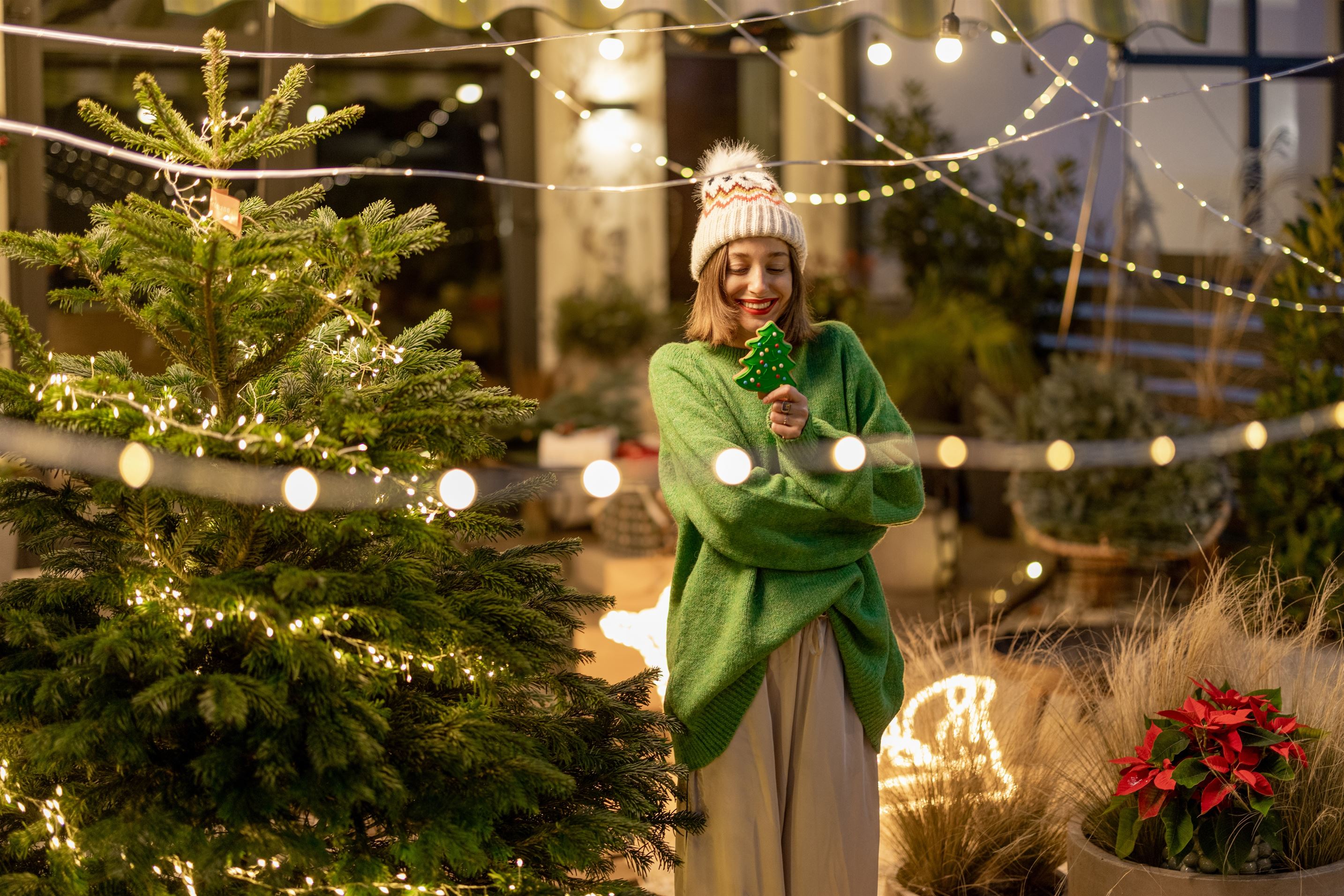 Kolorowe światełka to nieodzowny element każdej świątecznej dekoracji domu i ogrodu. W grudniu noce są długie, a zapalone lampki robią po zmroku niesamowity efekt. Dom, ogrodzenie i drzewka znajdujące się w ogrodzie, przyozdobione lampkami świetnie się prezentują. Można je ułożyć na różny sposób, a nawet układać z nich napisy, co potęguje efekt WOW!